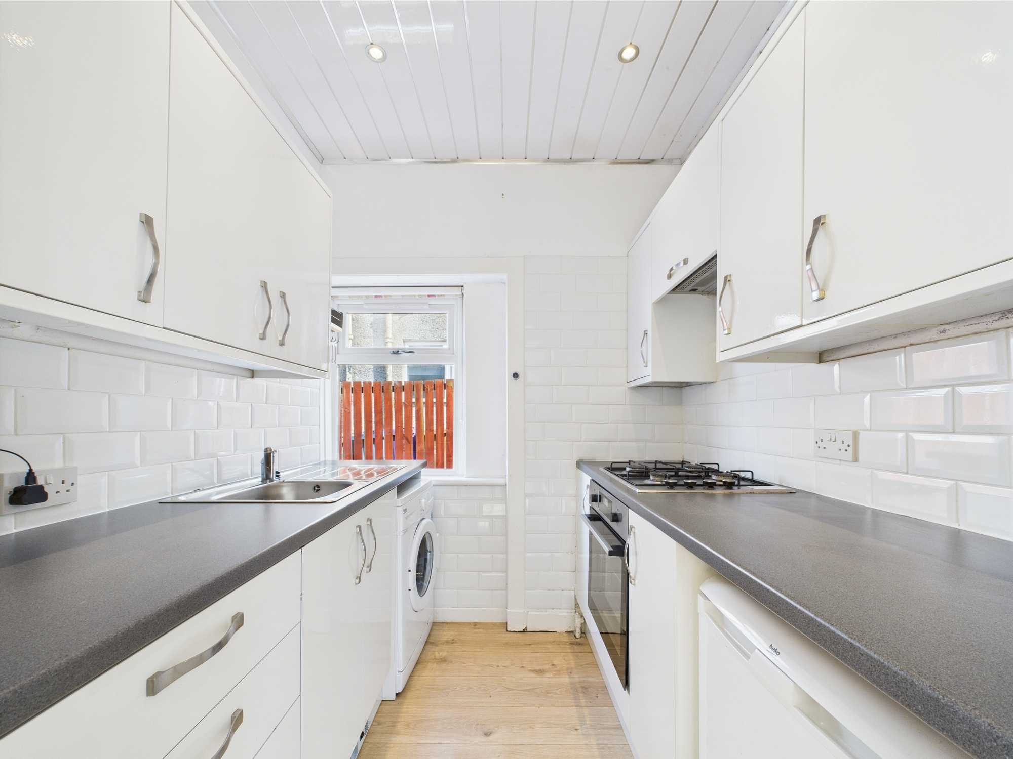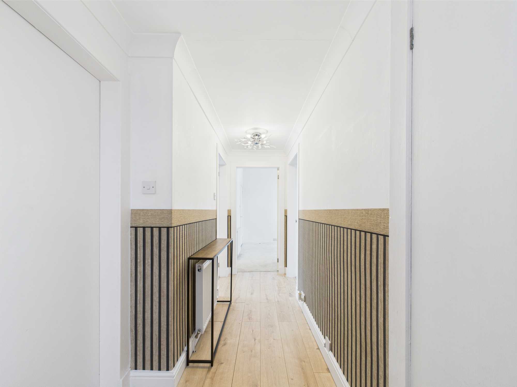 Upon entry, you are greeted to a long and welcoming hallway. To your left is the bathroom, featuring a modern design, and a three piece bathroom suite with an over the bath shower system. Across the hall, is a built in storage cupboard. Further on to the left, we come to the living room. This room has been designed beautifully featuring panelling detailing on the main wall as you enter. From here, you can gain access to the kitchen and also the third bedroom. These rooms let in lots of lovely natural light in, and views of the large private back garden. Back into the hallway, we come to the remaining two bedrooms. These rooms are spacious in size, perfect for a master bedroom and perhaps a childs bedroom or home office space. This property overall is finished to a fantastic standard throughout.